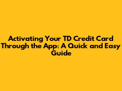 Activate TD Credit Card Via App: A Quick Guide