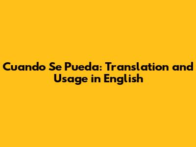 Cuando Se Pueda: Translation And Usage In English