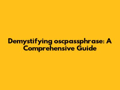 Demystifying Oscpassphrase: A Comprehensive Guide