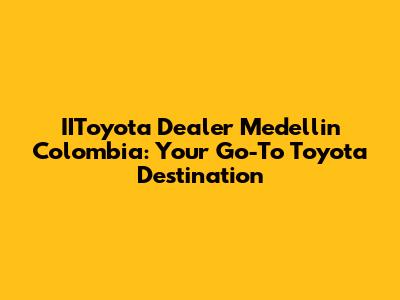 Hey guys! Are you on the hunt for a reliable Toyota dealer in Medellin, Colombia? Look no further! IIToyota is your one-stop shop for all things Toyota. Whether you're dreaming of a brand-new Toyota, need top-notch service, or are just browsing, IIToyota has you covered. Let's dive into why IIToyota should be your first choice when it comes to Toyota in Medellin.