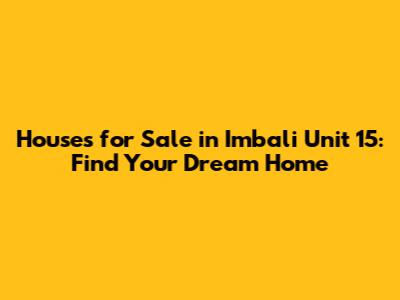 Imbali Unit 15 Houses For Sale: Find Your Dream Home