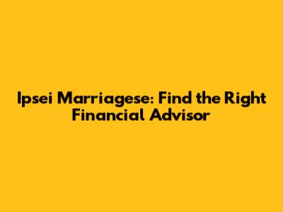 Ipsei Marriagese: Find The Right Financial Advisor
