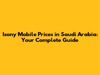Isony Mobile Prices In Saudi Arabia: Your Complete Guide