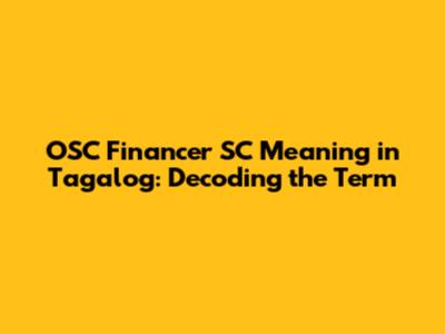 OSC Financer SC Explained: Your Guide To Understanding The Tagalog Meaning