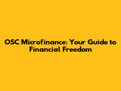 OSC Microfinance: Your Guide To Financial Freedom