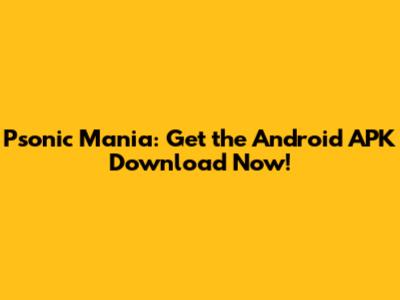 Psonic Mania: Get The Android APK Download Now!