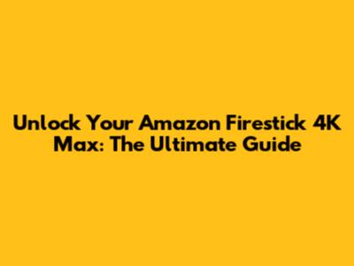Unlock Your Amazon Firestick 4K Max: The Ultimate Guide